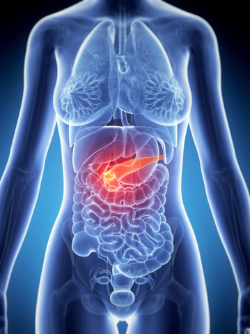 췌장에 생긴 종양이 담관을 막으면서 간과 담낭에 담즙이 쌓이라서 이른 포만감을 느끼는 증상이 나타난다고 해요. 또한 간과 담낭에 다량의 담즙이 축적되면 비대해지는 영향도 있어요.
