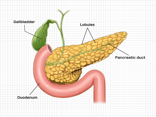 췌장은 일종의 소화기관으로 음식물이 십이지장을 통과할 때 소화 효소와 인슐린과 글루카곤 등의 호르몬을 분비하는 역할을 해줘요.